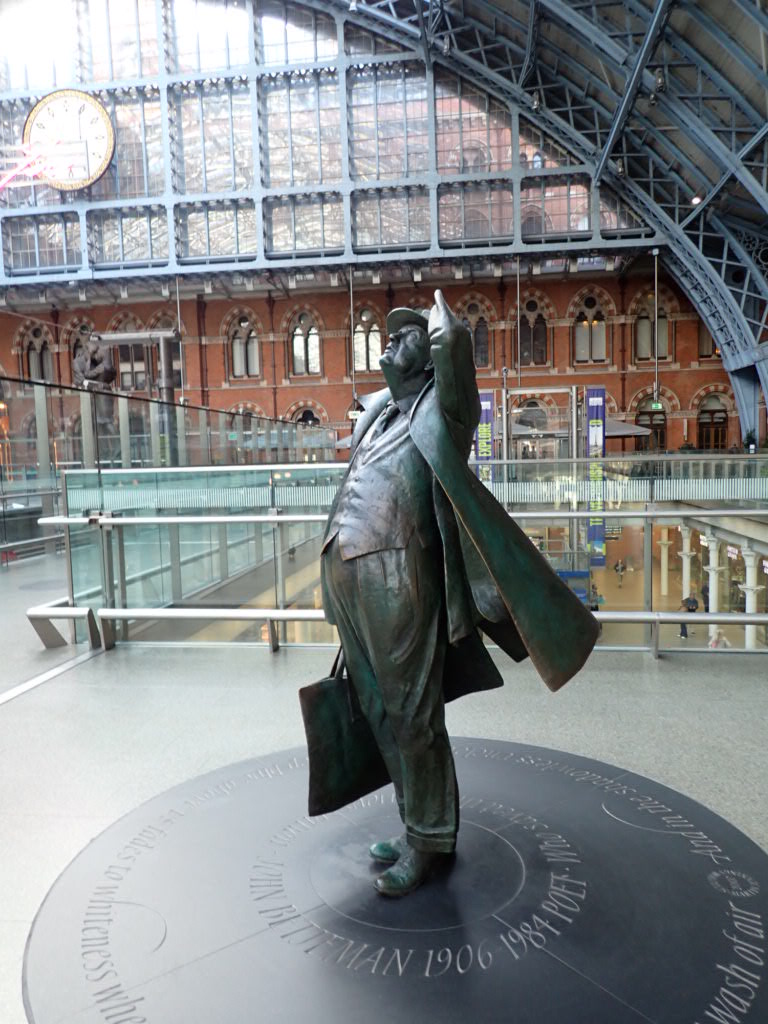Nearly coffee time so almost smiling at St Pancras as Rob nips off to see Sir John.