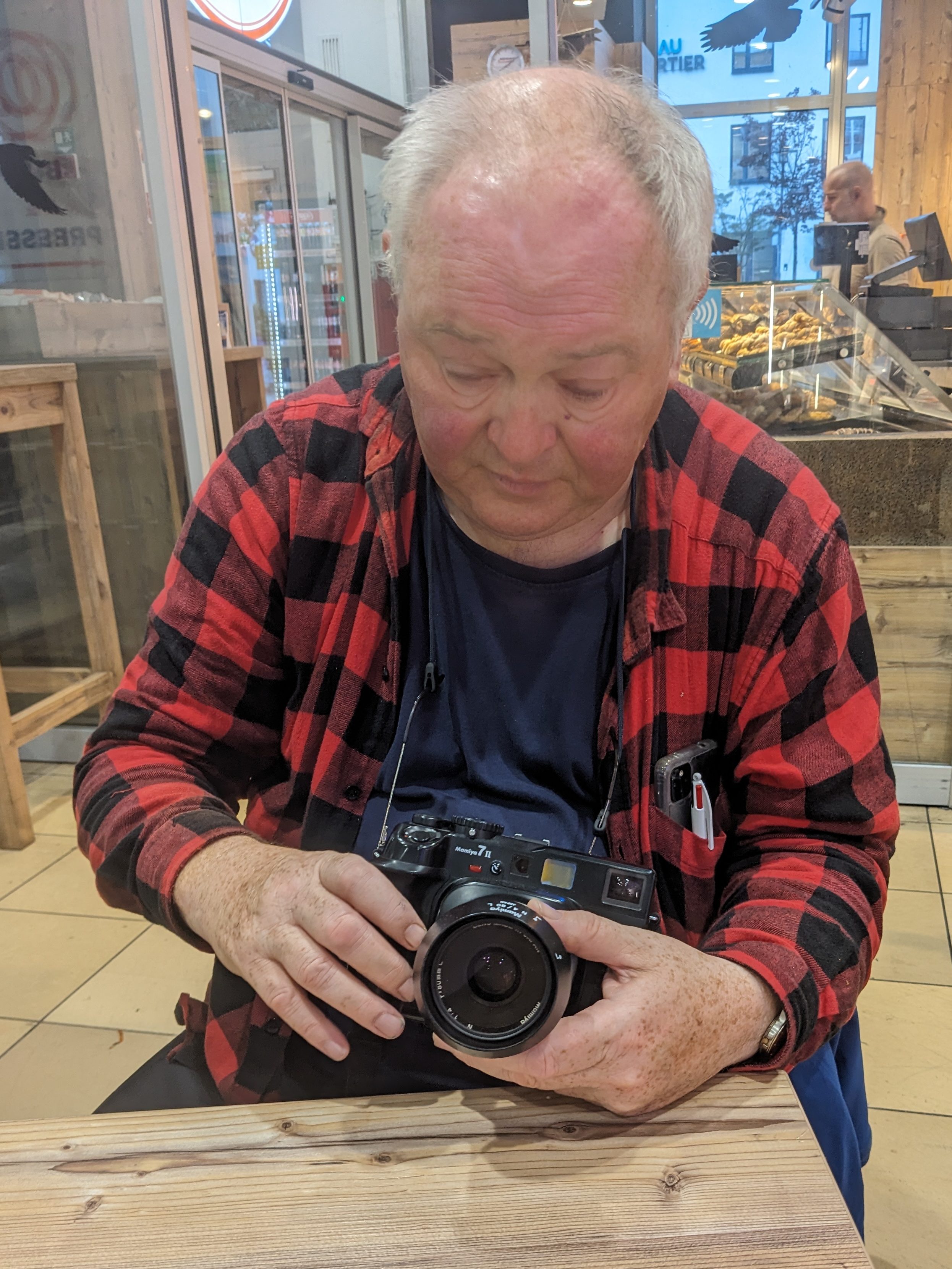 At Passau Rob got his Mamiya 7 out – a sign that serious photography would commence – none of this new fangled digital malarkey (except this neat little new digital compact that has taken most of the photos so far). However none of the results of Rob’s labours will be seen until after an extended darkroom session, to process and then print the films – first as contact prints and then the chosen few as final prints. I guess I maybe able to put some scanned negatives on the blog quicker than that.