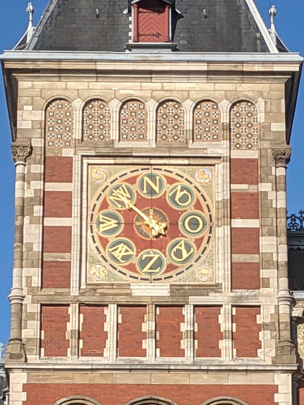2 hours in Amsterdam to spend our first money (coffee not included) as we had eaten the food we had brought with us. A ‘take your life into your hands’ bike ride where so many cyclists know exactly where they are going and we really didn’t have much of a clue. And a look at a wind direction clock.