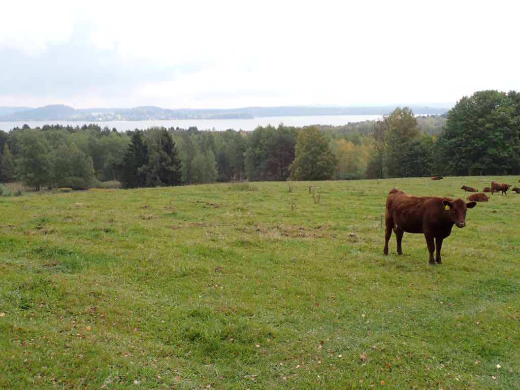 And then we entered the rather strange world that is on the southern side of the river. At times it reminded me of a bit of scenery from Little Red Riding Hood or Goldilocks and the Three Bears. You would think at any moment a woodcutter would come striding out of the deep, dark forest – and, in fact, most of the very few signs of life were lorries carrying logs away from the area. The rest of the time if I wanted to communicate, it was Rob or the cows. I asked Rob why he had not taken photos of the deep, dark forest? ‘Because it was deep and dark,’ he replied.