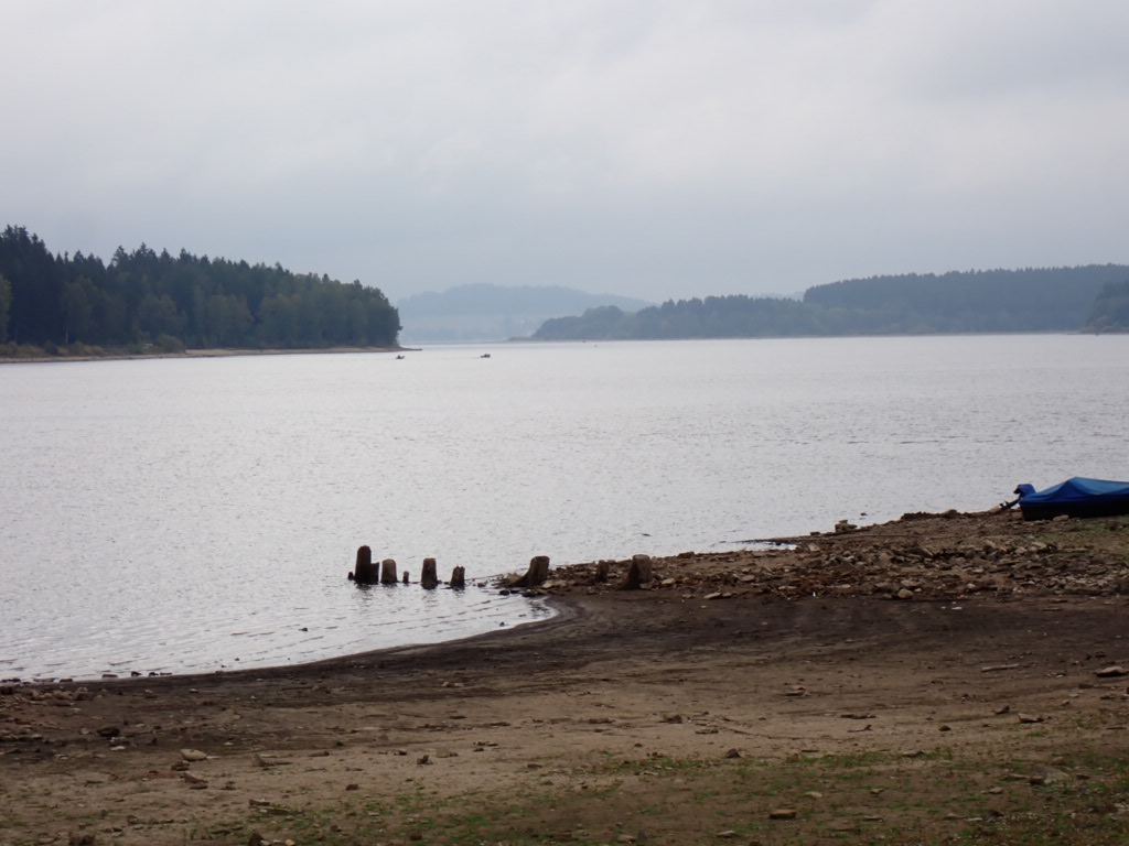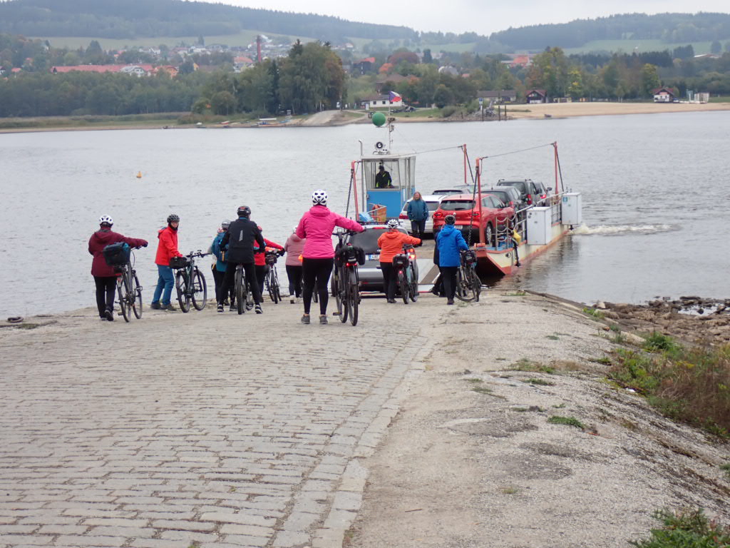 After spending the night at Horni Plana, we cycled down to the ‘beach’. In the 1950s the Vltava became a huge reservoir here- the largest area of water in the Czech Republic. So Horni Plane would have been high up the side of the Vltava valley but is these days on the banks of the Lipno Reservoir. It was billed as the solution to flooding further down the river and also enabled the construction of a hydroelectric plant. So the first thing we did that day was to cross the Vltava to the other side by boat.