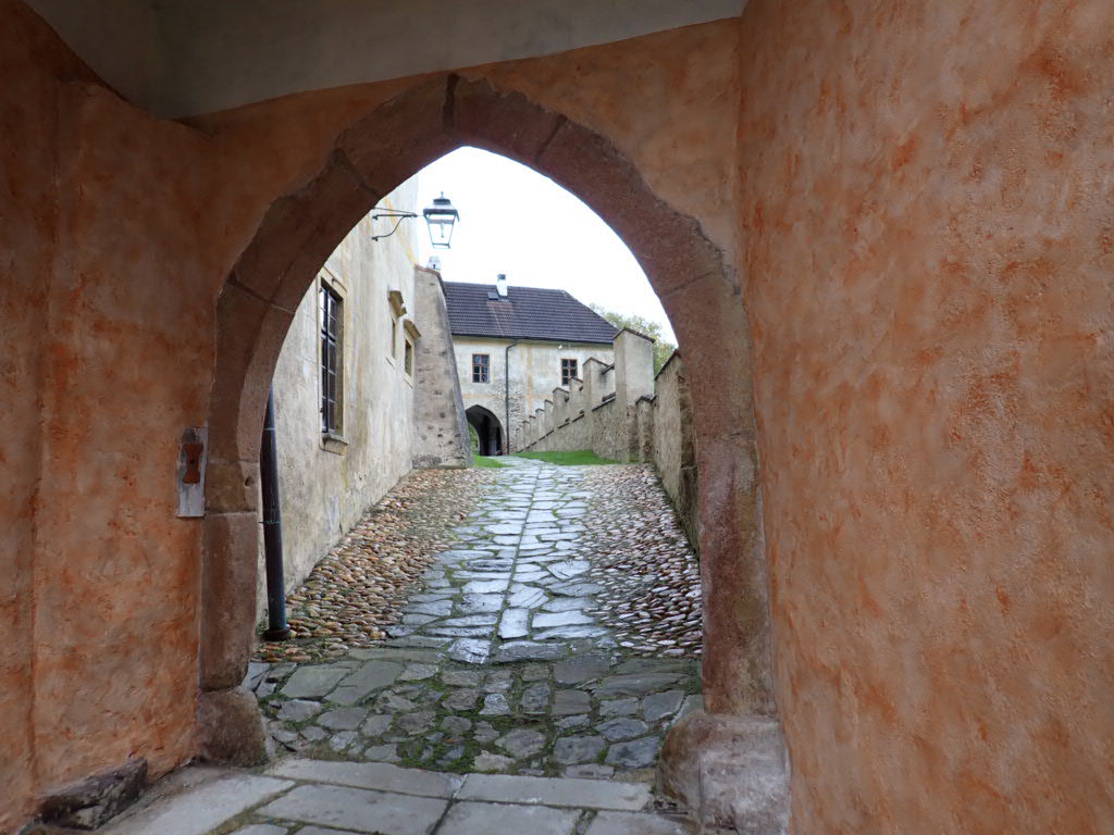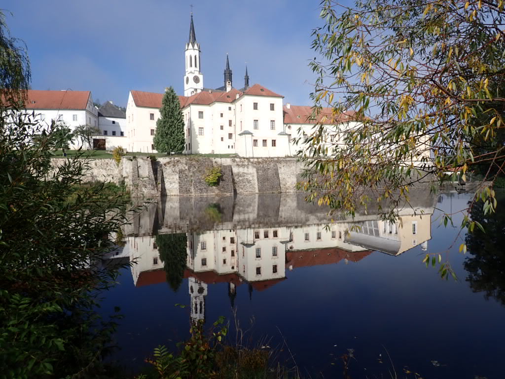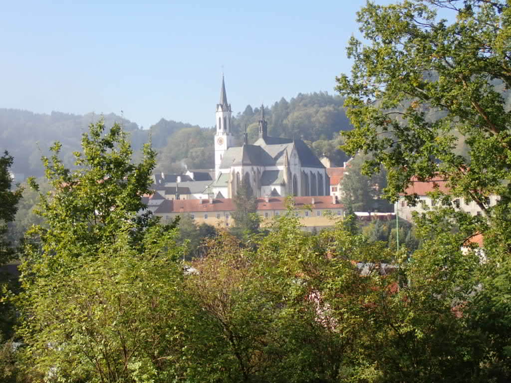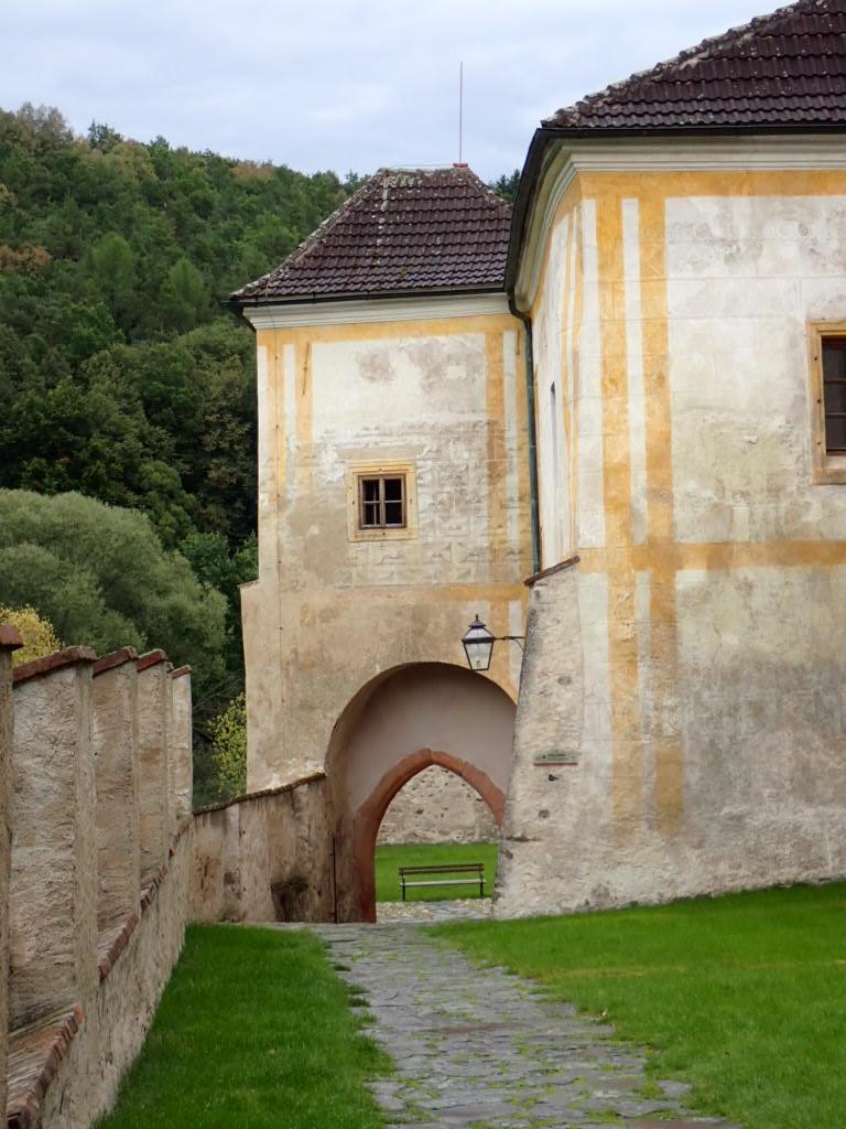 But we had to cycle up out of the valley and it was so, so steep, and it went on and on up. A really hard ride/ walk. When we passed the station at Zlata Koruna and I realised how far down into the valley we were going to go to get to the monastery, and then we would have to climb back up to the station, I got a bit grumpy. ‘It’s OK’ Rob said, ‘there is a bus’, Rob said. So, satisfied, we went on a guided tour of the monastery (in Czech but an English printed guide book).